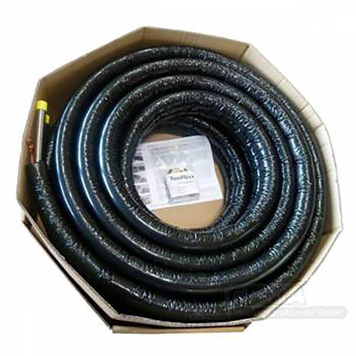 Pre profesionálne pripojenie vašich solárnych kolektorov k solárnej čerpacej stanici! Potrubný systém pozostáva z dvoch predizolovaných vlnitých rúrok z nehrdzavejúcej ocele pre prívodné a vratné potrubie, ako aj z integrovaného kábla snímača. Solárny kábel od značky FlexxSys bol špeciálne vyvinutý na prenos slnečnej energie z vášho solárneho systému do vodných okruhov vo vašej domácnosti s čo najväčšou účinnosťou. To zaisťuje optimálne využitie slnečného tepla a tým zvyšuje účinnosť celého vykurovacieho systému.