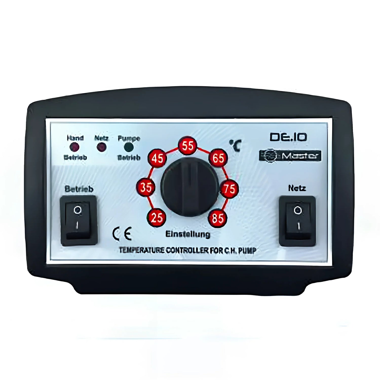 Riadiaca jednotka čerpadla Master DE.10 umožňuje presné ovládanie obehového čerpadla alebo prehrievača spiatočky kotla. Teplota sa jednoducho nastavuje pomocou praktického otočného ovládača. Riadiaca jednotka zapne čerpadlo hneď po dosiahnutí nastavenej teploty a automaticky ho vypne, ak teplota kotla klesne o viac ako 2 °C pod cieľovú hodnotu. Táto presná funkcia zabezpečuje, že čerpadlo pracuje iba vtedy, keď je to skutočne potrebné. To zaisťuje energeticky úspornú prevádzku a predlžuje životnosť čerpadla.