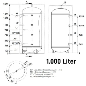 Vyrovnávací zásobník topné vody WGJ-BE 800/1000