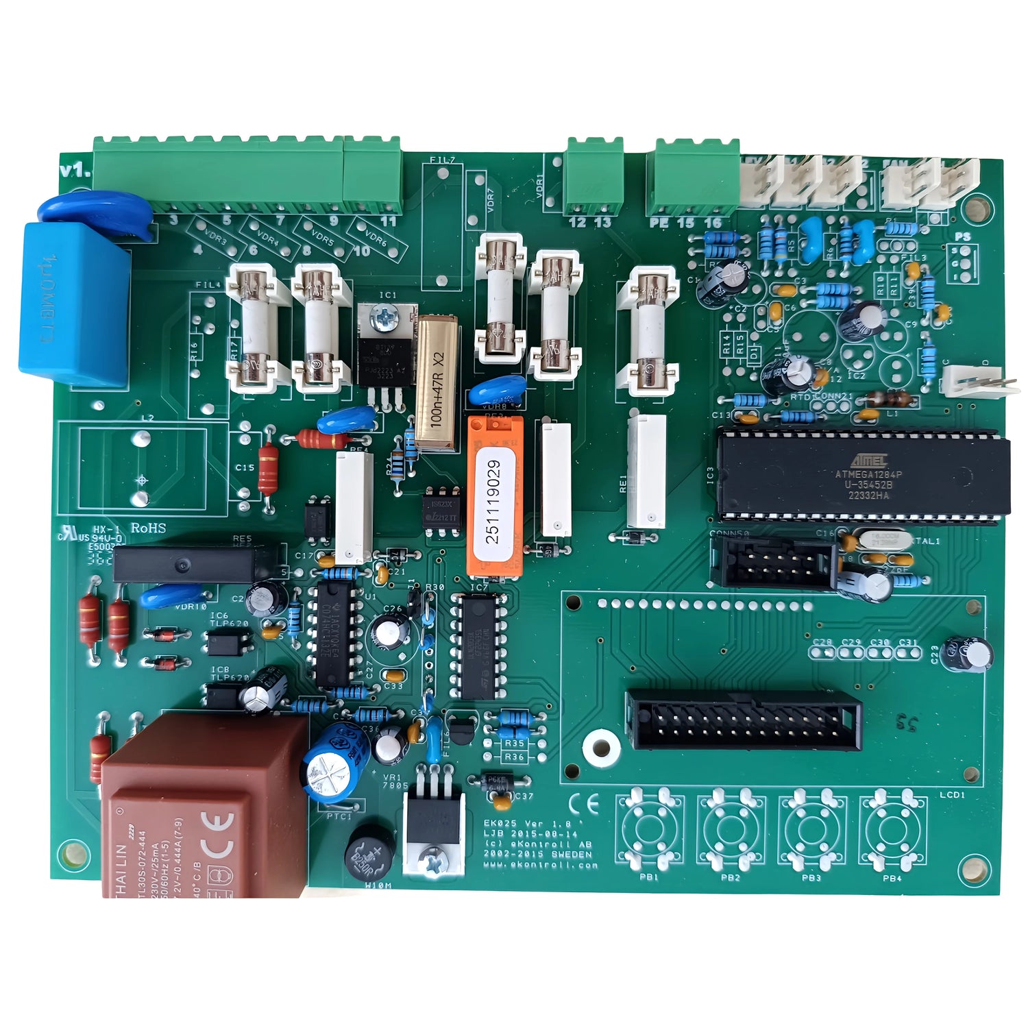Kromě řídicí funkce plní deska plošných spojů také bezpečnostní funkce: detekce poruch, nouzové zastavení a blokování v kritických podmínkách zajišťují, že hořák pracuje pouze v bezpečném provozním stavu.
