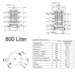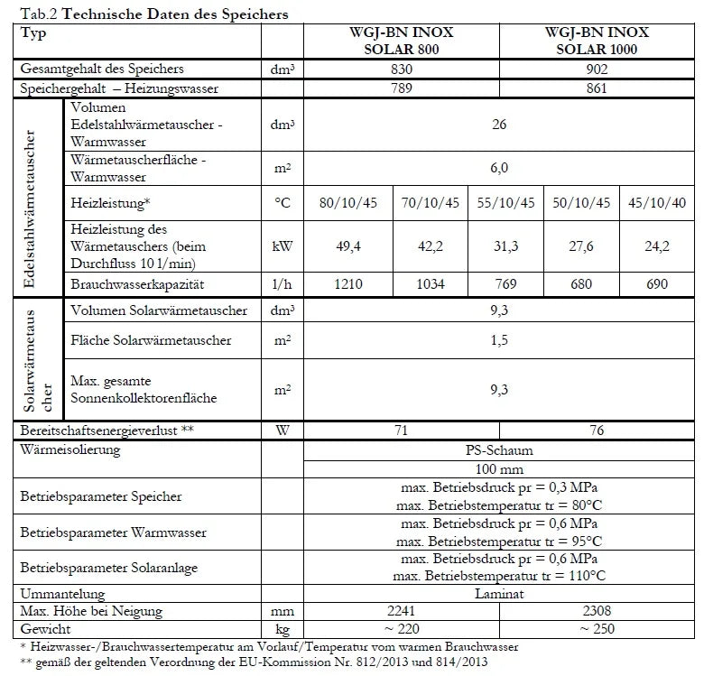 Το WGJ-BN INOX SOLAR είναι ένα συνδυασμένο δοχείο προσωρινής αποθήκευσης για θέρμανση νερού και ζεστού νερού χρήσης με ενσωματωμένο θερμαντικό στοιχείο από ανοξείδωτο χάλυβα ως εναλλάκτη θερμότητας. Σχεδιάστηκε για ενσωμάτωση σε συστήματα κεντρικής θέρμανσης με λέβητες, αντλίες θερμότητας ή για τη χρήση ηλιακής θερμότητας και επιτρέπει τόσο την αποθήκευση θερμικής ενέργειας όσο και τη συνεχή θέρμανση πόσιμου νερού.