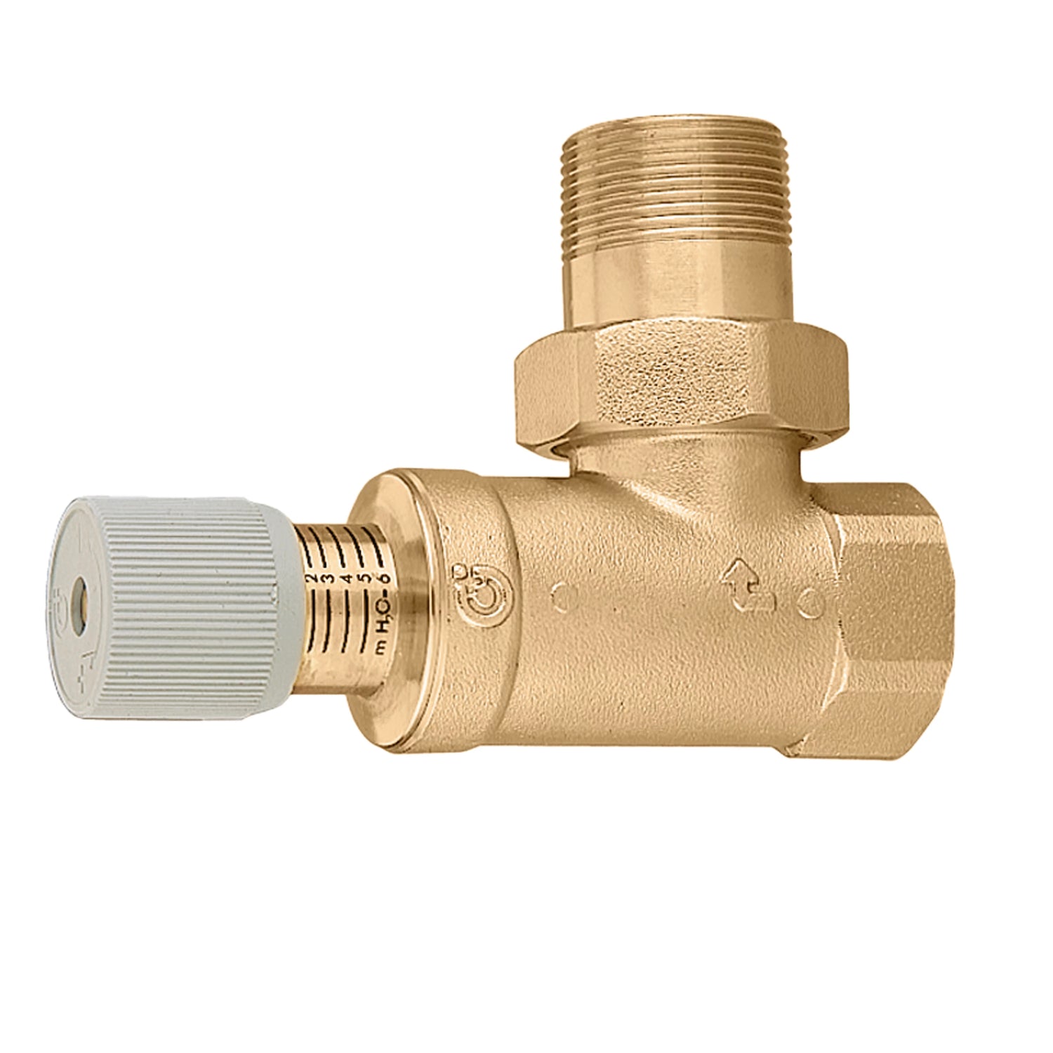 The degree scale allows simple and fine adjustment of the setpoint. Connections: 3/4” female thread (ISO 228-1), designed for suitable male thread with screw connection, for uncomplicated installation in existing systems.