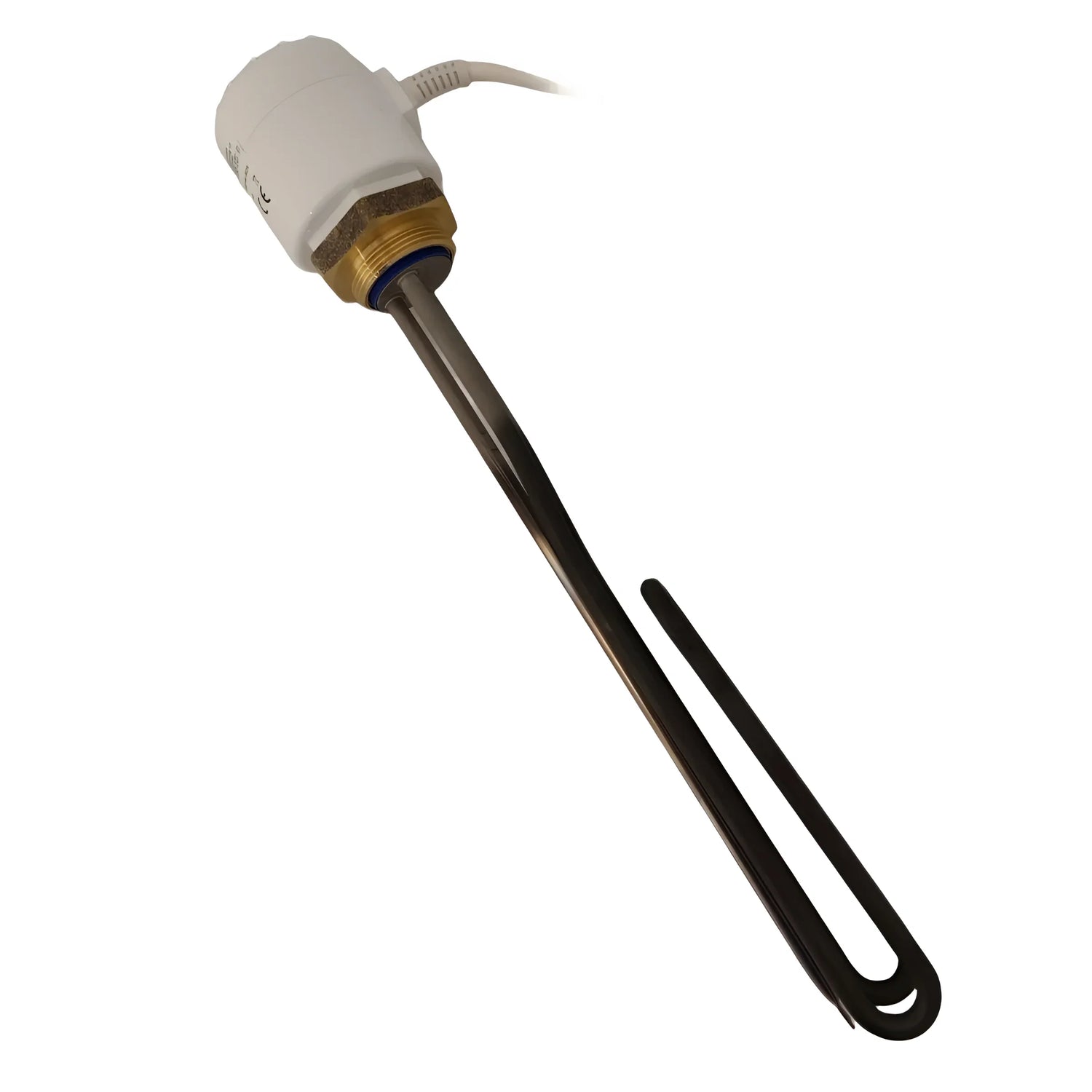 Le réchauffeur à visser est constitué d'un élément chauffant tubulaire robuste, monté sur une gaine capillaire dans une tête filetée de 1 1/2". Cette conception garantit une installation simple et sûre. L'élément chauffant est en acier Incoloy, qui offre une haute résistance à la corrosion et aux agents chimiques. Ce réchauffeur est ainsi idéal pour les applications exigeantes et garantit une longue durée de vie, même en utilisation intensive.