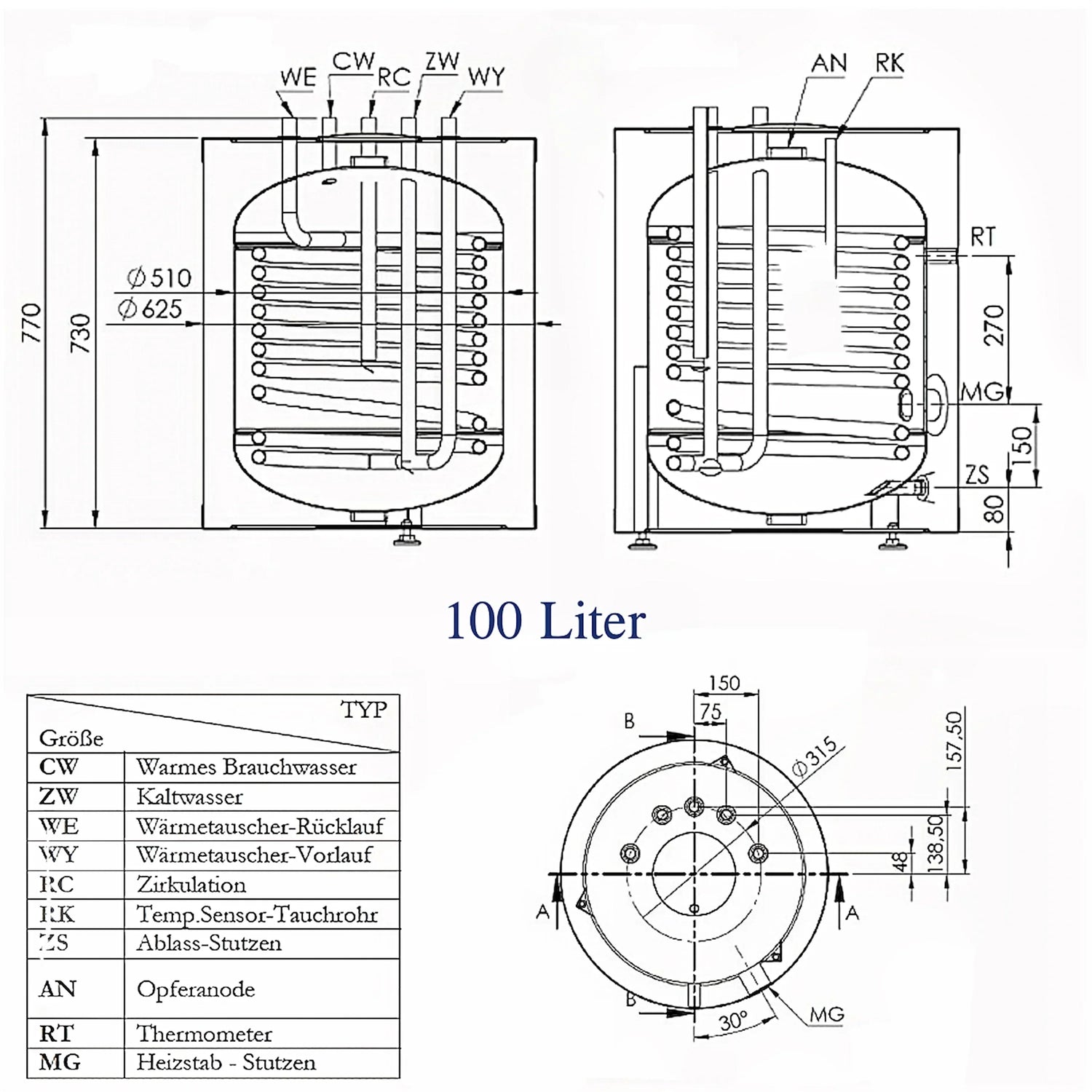Karšto vandens bakas | Geriamojo vandens bakas | Vandens atmintis 100L-180L