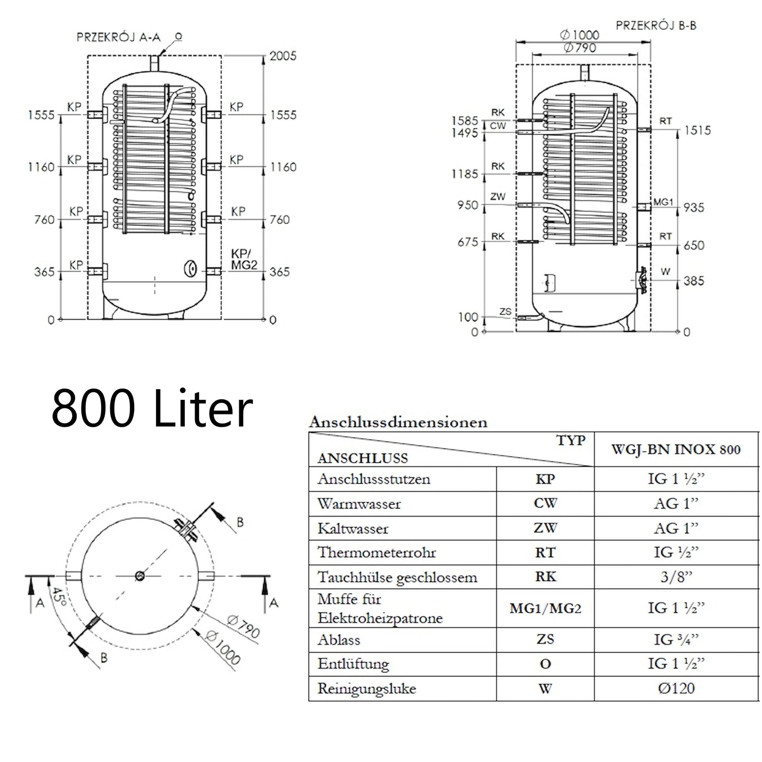Apkures ūdens bufera tvertne ar karstā ūdens sildītāju WGJ-BN INOX