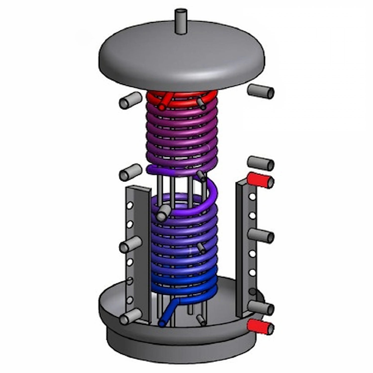 Zasobnik wykonany jest ze stali jakości S235JRG2, zgodnie z normą DIN 4753 i normą europejską EN 12897, z surowym wnętrzem i zagruntowaną powierzchnią zewnętrzną. Owinięty wymiennik ciepła wody pitnej wykonany jest z wysokiej jakości falistej rury ze stali nierdzewnej 1.4404, wyprodukowanej w Niemczech, charakteryzującej się dużą powierzchnią roboczą, co przekłada się na wysoką wydajność ciepłej wody.