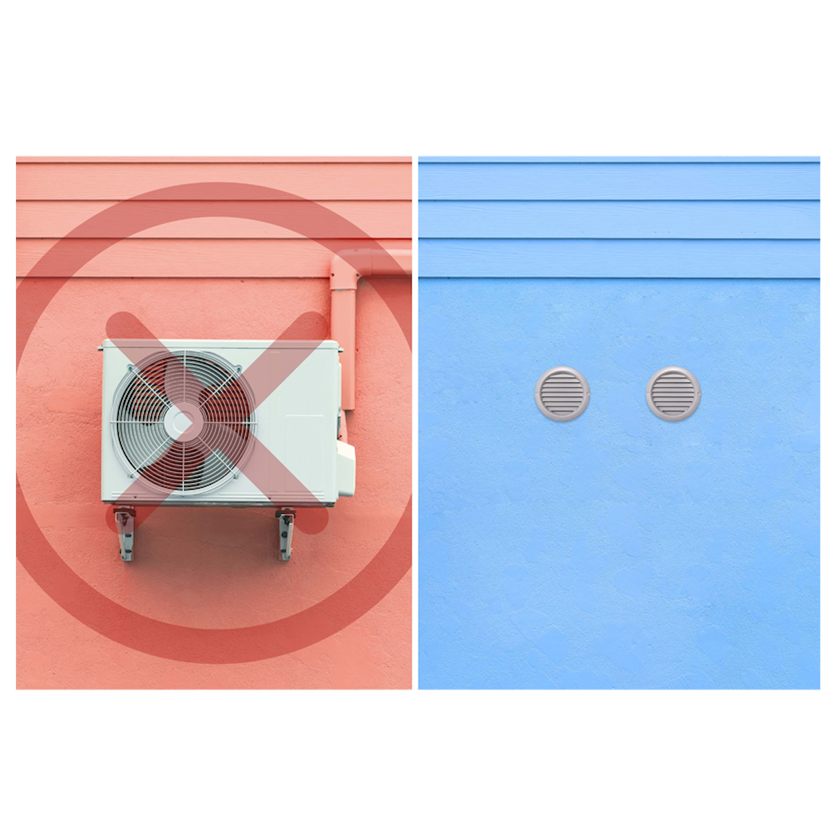 Vyvinuté ako Monoblok-riešenie, systém nevyžaduje samostatné vonkajšia jednotka, Zjednodušuje to inštaláciu a šetrí miesto. Má atraktívnu kovovú povrchovú úpravu, ktorá zaručuje stabilitu aj moderný vzhľad.
