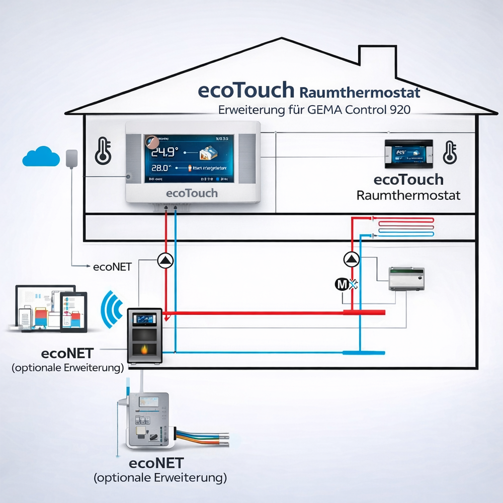S izbovým termostatom PLUM eco Touch výrazne rozšírite možnosti vášho systému regulácie vykurovania Gema CONTROL 920. Je ideálny pre domácnosti, ktoré vyžadujú presnejšiu reguláciu teploty alebo reguláciu viacerých miestností. Toto rozšírenie nielen zlepšuje komfort bývania, ale tiež pomáha optimalizovať spotrebu energie tým, že umožňuje presné nastavenie teploty podľa vašich potrieb.