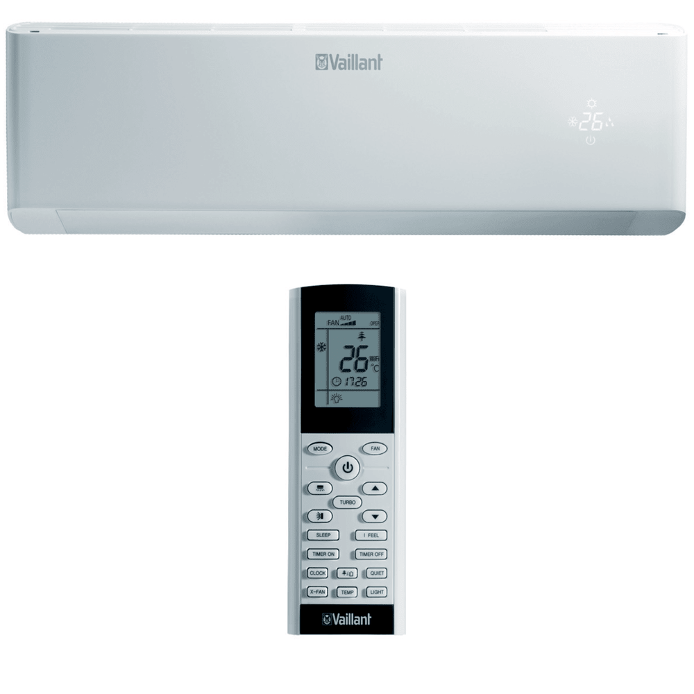 climaVAIR exclusive kühlt und heizt einzelne Räume effizient und zuverlässig, auch bei extremen Außentemperaturen: von -15° C bis 48° C im Kühlbetrieb und von -15° C bis 24° C im Heizbetrieb. Vaillants Klimageräte sorgen für ein optimales Wohlfühlklima im Sommer und darüber hinaus – In einzelnen Räumen, wie Schlafzimmer und Dachboden, aber auch in Ferien- oder Wochenendhäusern. Mithilfe der Infrarot-Fernbedienung stellen Sie per Knopfdruck Ihre Wunschtemperatur ein. Die hochwertige Filtertechnik mit aktiver Ionisierung befreit die Raumluft von Bakterien, Allergenen und Gerüchen. Darüber hinaus sorgt climaVAIR automatisch dafür, dass sich weder übermäßige Luftfeuchtigkeit, Schimmel oder Rost an der frostgeschützten Außeneinheit bilden kann.