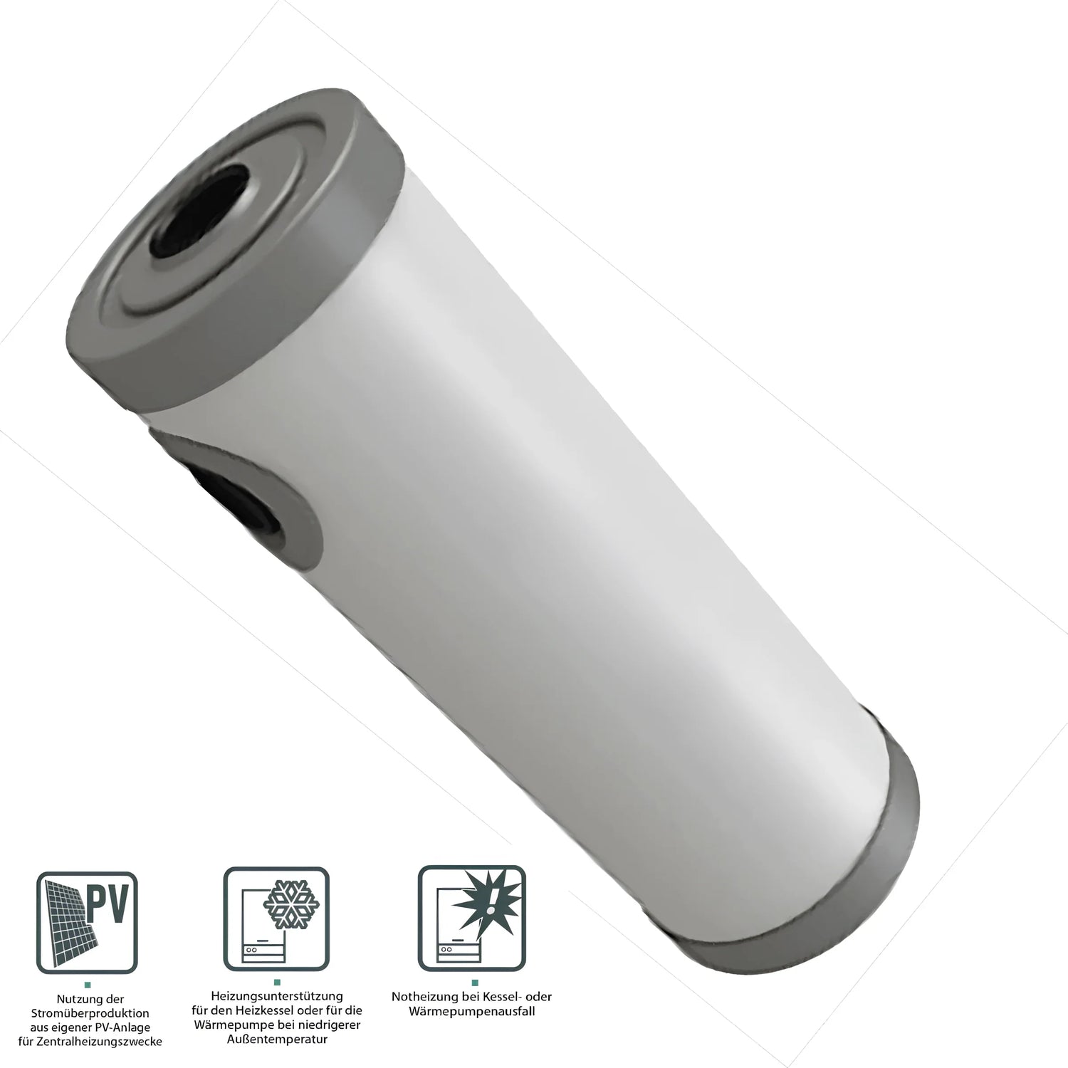 Ideal para uso em casas de fim de semana e férias, o sistema garante um fornecimento contínuo de calor mesmo em caso de manutenção ou falhas de caldeiras, caldeiras de condensação ou bombas de calor.