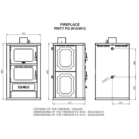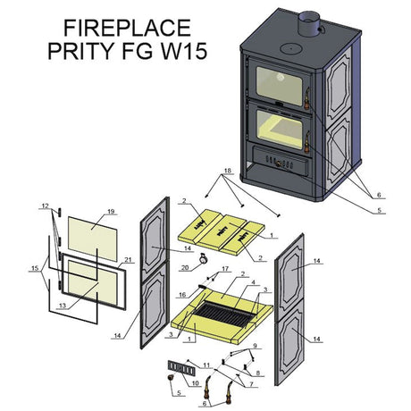 Vattenförande vedspis med bakfack Prity FGW15 - 19,8 kW